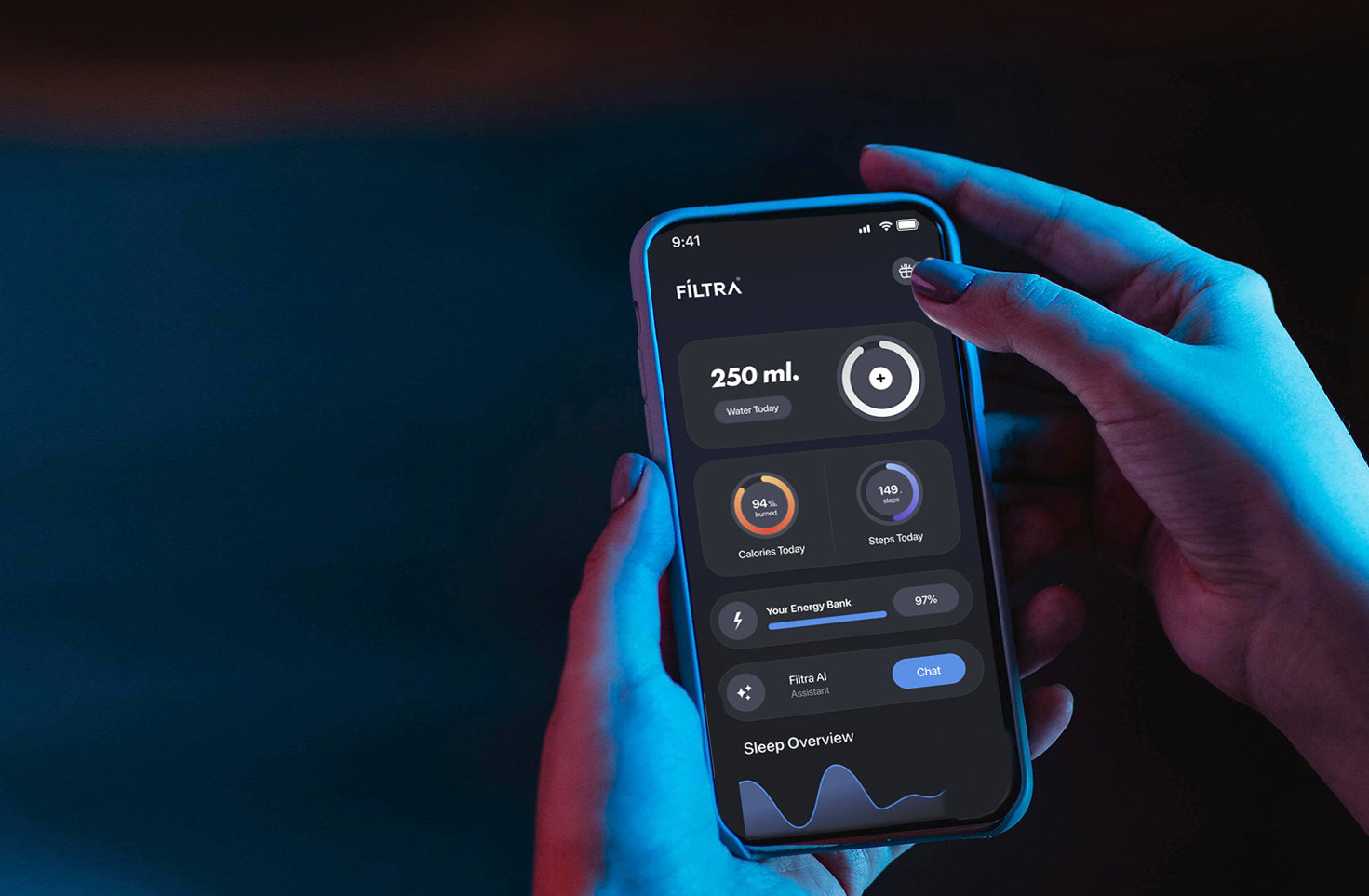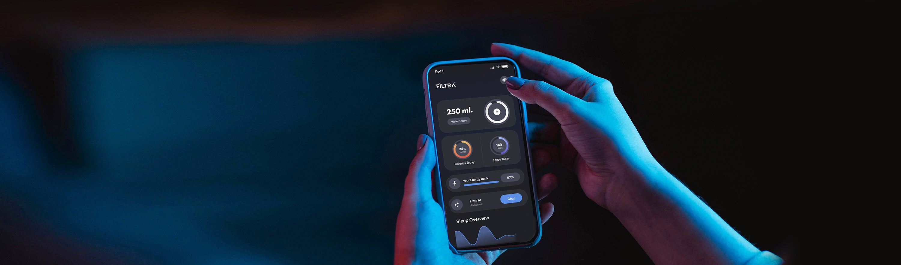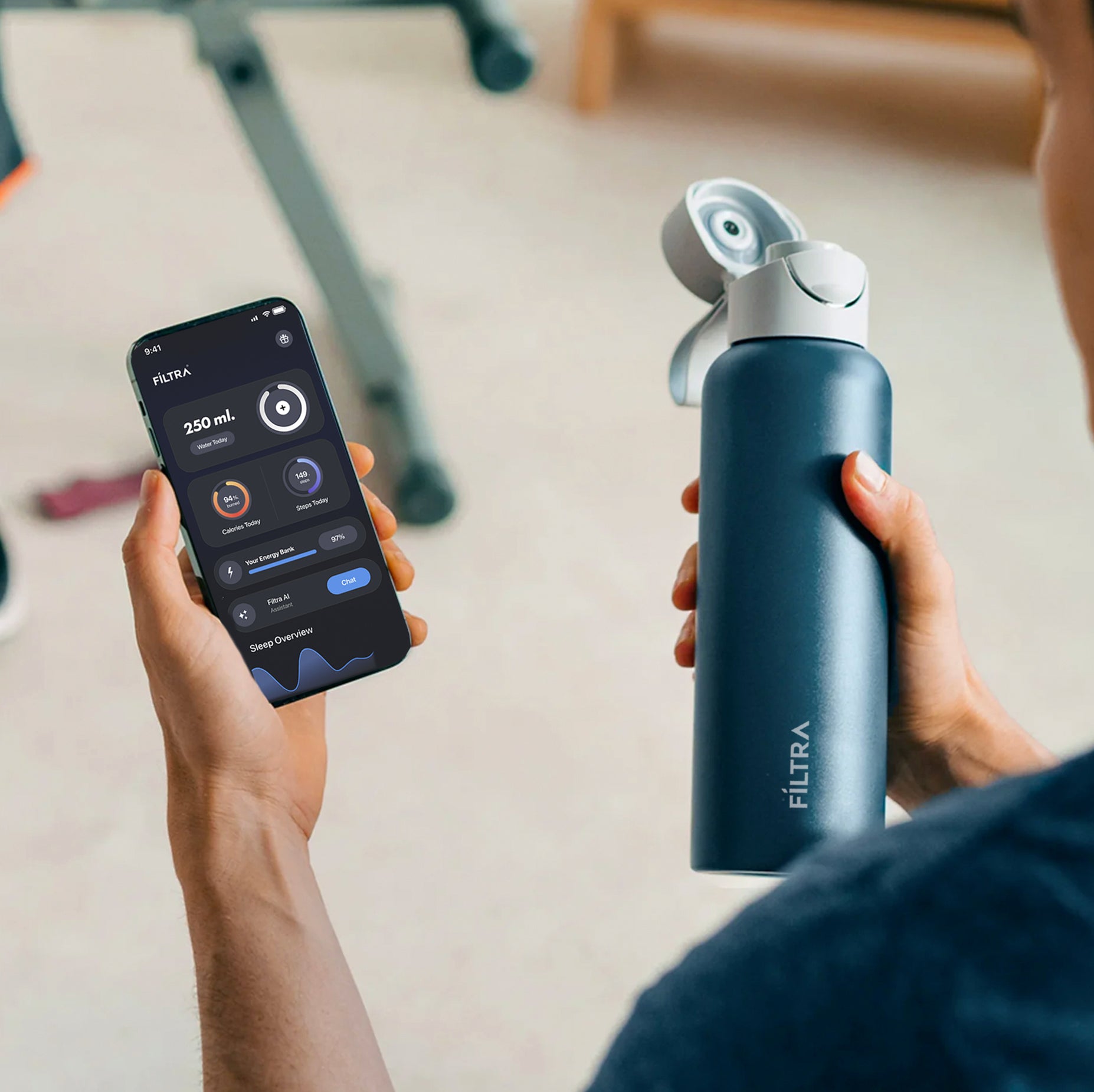 Urmărește-ți progresul în aplicația noastră. Acum poți număra caloriile, monitoriza hidratarea și chiar urmări somnul, toate într-o singură aplicație. Vizitează Magazinul de aplicații sau Google Play pentru a o descărca.
