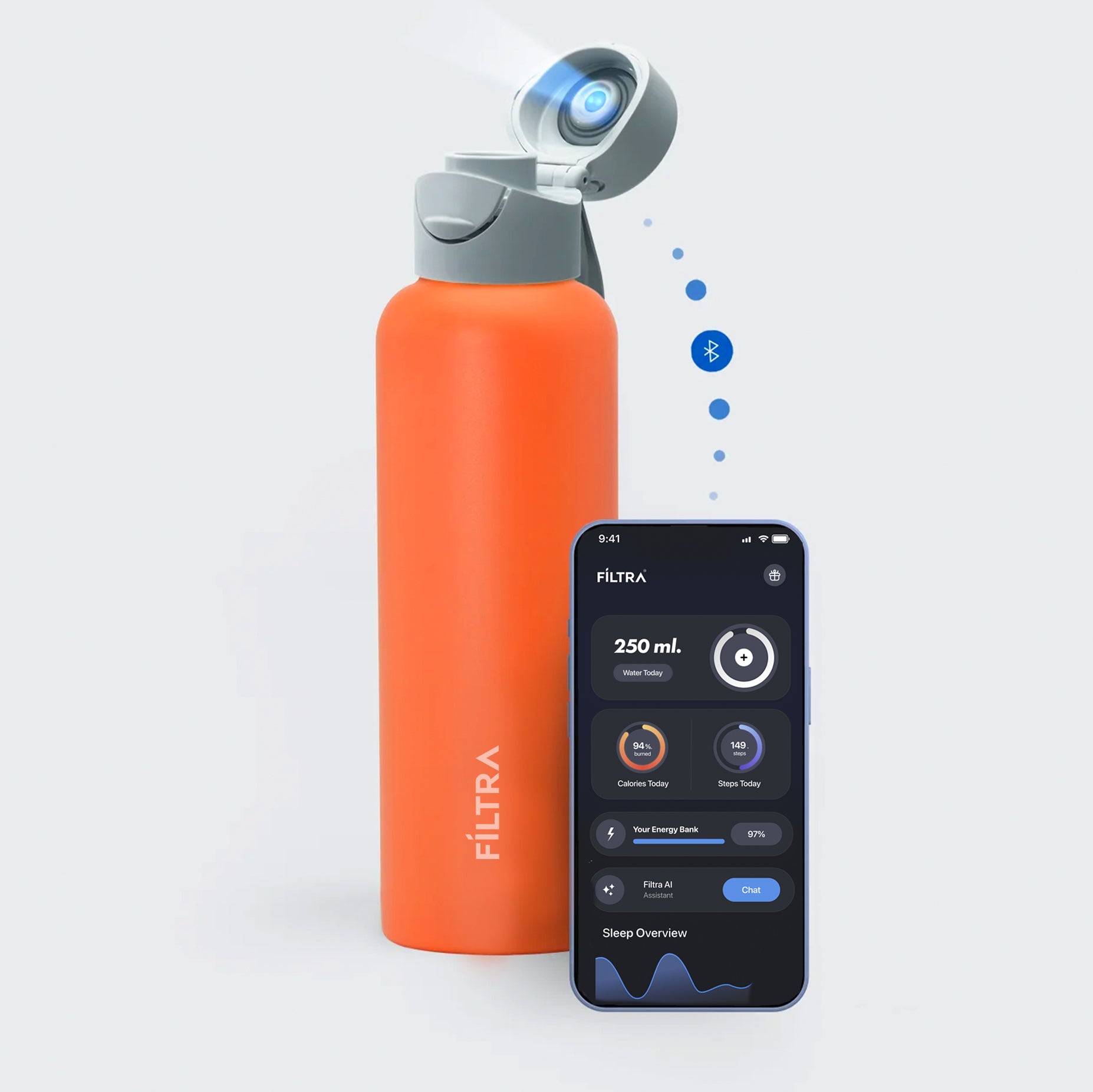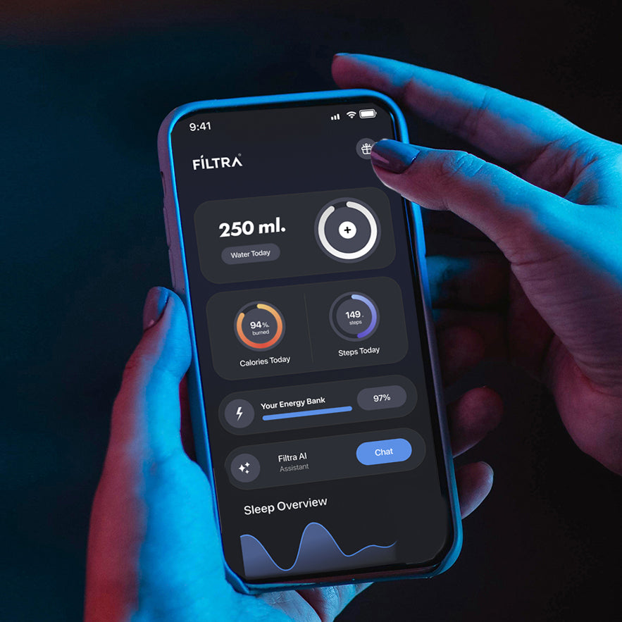 Filtra AI te va ajuta în drumul tău spre o hidratare corespunzătoare. Poți pune orice întrebare legată de hidratarea ta, iar acesta va fi alături de tine zi și noapte, în buzunarul tău.