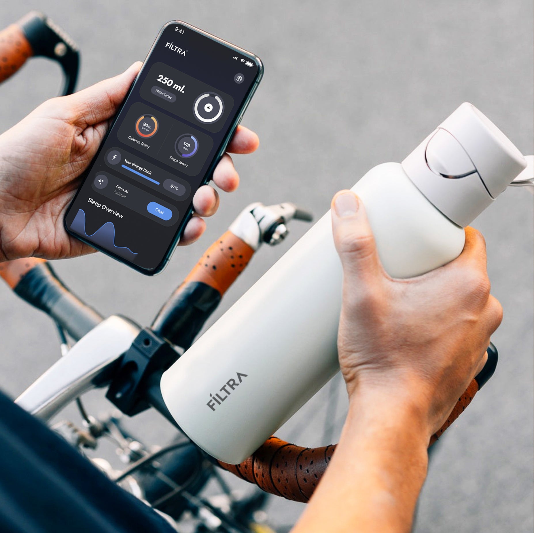 Filtra Smart-Bottle™ este prima sticlă de apă din lume care se curăță singură, disponibilă prin abonament lunar. Folosește tehnologia UV pentru a elimina până la 99%* din bio-contaminanți.